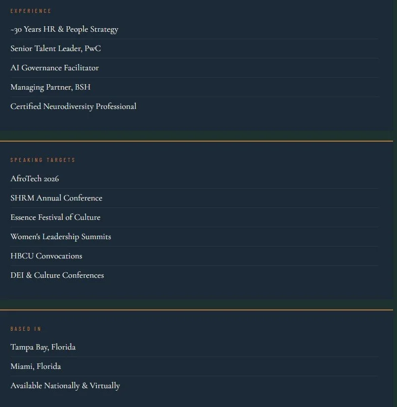 She is also the creator of the BSH AI Governance Framework, the author of From Boardroom to Bloom (forthcoming), and the Managing Partner of a holding company whose ventures span consulting, luxury experiences, mobility, and publishing. She is based in Tampa Bay and Miami, and speaks nationally and virtually.