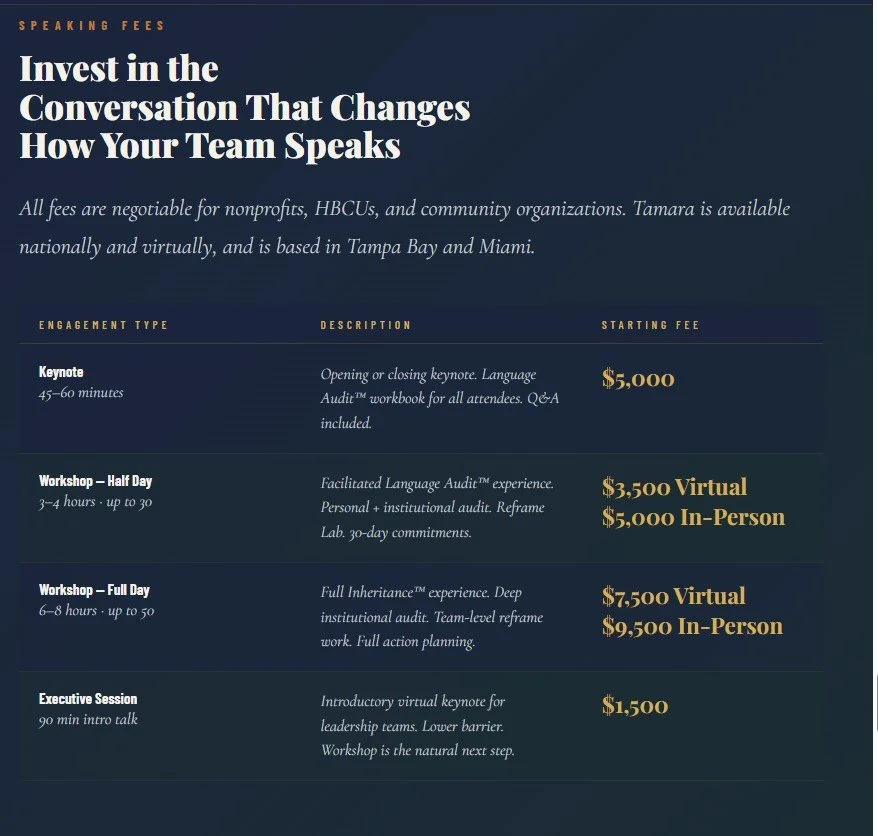 “What sets Tamara apart is that she’s not performing this work. She’s lived it — in the rooms, in the organizations, in the moments where language shaped who got to advance and who didn’t. That credibility comes through in every minute of her keynote.”